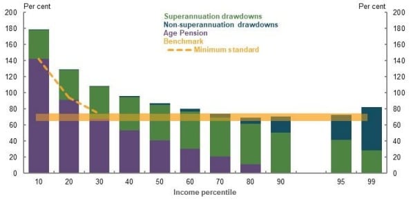 The top 20% of income earners will come close to the replacement rate using super and personal savings.