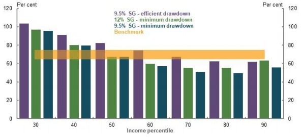 It found that even if the SG is held at 9.5%, lower- and middle-income earners will retire within or above the 65% to 75% replacement benchmark through a combination of the Age Pension and some super.